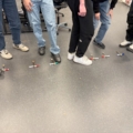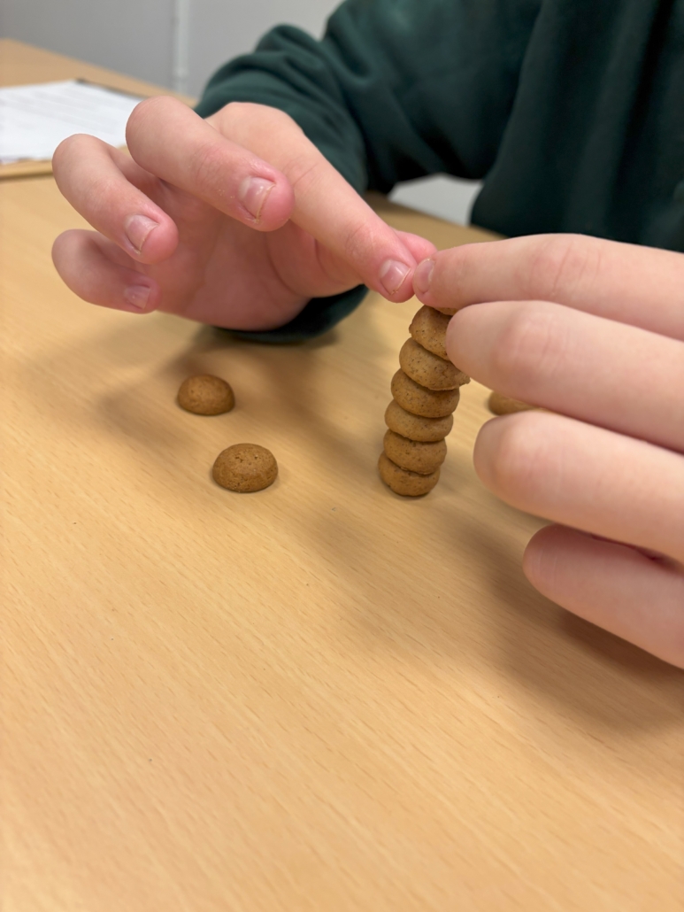 Ideen bag Pebernødder i matematik er at det ikke skulle indeholde alt for meget forberedelse. Det eneste du skal gøre er at printe de sider du skal bruge, købe nogle poser pebernødder og finde et par ting frem de flest har liggende – malertape, teskeer, elastikker og tavletusser. Derudover skal eleverne deles ind i grupper. Det kan du gøre tilfældigt ved hjælp af mine gruppemønter. I hvert sæt gruppemønter er der tal fra 1-6 i 6 farver. Du finder dem i min webshop. Når eleverne har fået et gruppenummer kan de gå til den opgave de får tildelt. Numrene står på bordene. Store tal til at sætte på bordene finder du også i min webshop.